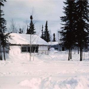 The Fraser house was a typical prefab house at Moak Lake. Manufactured by American company Butler Manufacturing, materials were shipped in by Cat train over an ice road and assembled by Wells Construction of The Pas. The outer corrugated steel structure now forms part of the Thompson Golf Club clubhouse.